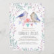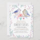 Aves casal flores cor-de-rosa giro aquarela madeira armação de madeira convites para duches de bebês