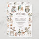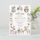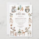 Esse convite de aniversário de animais rústicos e brancos da floresta pode ser personalizado para meninos ou meninas, e apresenta animais pintados bonitos que as crianças amam, com cogumelos, bolotas e árvores, cercando o texto do convite. O tipo é marrom e você pode usar a ferramenta design simples para mudar as cores da fonte se preferir outra cor.