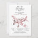 Um convite de chá de bebê de avião antigo com uma delicada ilustração de avião no estilo de livro de histórias, amarrado com laços de fita macia e a frase Que a Aventura Comece. Os tons rosados suaves e a ilustração inspirada em relíquias de família criam um convite encantador, perfeito para celebrar um novo bebê e a emocionante jornada à frente. Com um design clássico de berçário, este convite é adequado para chás de bebê temáticos de avião, celebrações inspiradas em viagens e encontros doces que recebem um pequeno aventureiro. Disponível em impressão, como download digital ou ambos.
