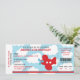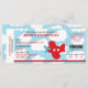 Convite do bilhete de avião em vermelho & no azul com fundo da nuvem. Aperfeiçoe para a festa de aniversário/chá de fraldas dos meninos.