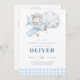Adorável convite de aniversário do avião com ursos de pelúcia. Divertido e moderno, perfeito para um primeiro aniversario de menino.