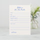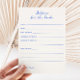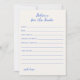 Cartão Quirky e whimsical 'Advice for the bride' com fonte azul manuscrita. O cartão descarregável vem num esquema neutro de cor azul de cobalto e névoa.