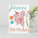 Aniversário saudando Feliz Aniversário com balões e Axolotl para o aniversário das crianças. Uma carta colorida engraçada para o aniversário das crianças. Para os amigos amam o Axolotl.