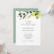 O convite para casamento verde de sábio elegante apresenta uma design minimalista com meus limões de cor d'água e minha ramificação de azeitona. Tipografia moderna com serifa clássica em cinzas de carvão. A placa se reverte para uma cor complementar. Para comprar o tema mediterrânico completo, incluindo downloads digitais e amostras de convites para casamento visite www.zazzle.com/dotellabelle Trabalho de arte e design por Victoria Grigaliunas