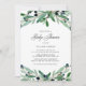 Azeitonas de Aquarelas e Convite para Chás de fraldas de Greenerescência | Convite de chá de fraldas personalizável com ilustrações aquosas de azeitonas e folhagem, com desenho elegante e tipografia clássica. Este convite verde é perfeito para primavera e chás de fraldas de outono. Itens correspondentes estão disponíveis.