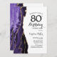 Convite de aniversário de 80 roxo, branco e dourado. Elegante design moderno com aquarela agate marble geode background, faux glitter gold e typografia script font. Trendy convida o cartão perfeito para uma comemoração de dia das mulheres na moda. Impressos convites Zazzle ou modelo de impressão digital instantânea para download.