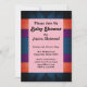 Convite para chás de fraldas. Colorido com azul, roxo e laranja neste convite artístico. Vamos tribal com este desenho abstrato Aztec na frente e atrás desta placa plana. O padrão está em tons de azul, roxo e castanho claro ou bronzeado. Substitua as informações por suas. Toda a personalização está disponível para a parte frontal e traseira da placa.