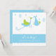 Convites azuis do chá de fraldas da cerceta bonito. Caracterizando uma cegonha que leva um menino. Expressão personalizada incluída.