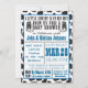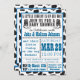 Convite azul do chá de fraldas do vaqueiro de Cowprint. Aperfeiçoe para o casal que espera um bebé!