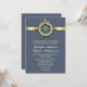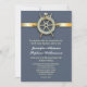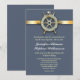 O convite náutico do casamento com a âncora azul da fita do design e do ouro com um barco roda.