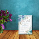 Flores de aquarela azul convite para casamento verde da horta floral. Ele apresenta buquês de flores em tons azuis e verdes de menta nos cantos enquanto seu texto é colocado em um quadro branco com uma borda. O dorso inclui as terras florais nas partes superior e inferior.