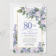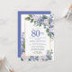 Honra uma mulher especial com este Convite de aniversário elegante e feminina. 80 é escrito em texto azul grande. A comemoração de aniversário segue. O nome do convidado também está em letras azuis. O resto do texto é cinza de pomba mole. Os detalhes da comemoração de aniversário são cercados por uma moldura de ouro chico que é decorada com rosas brancas e flores azuis. Os elementos florais estão aninhados em folhas verdes profundas. Enquanto é um design tradicional, a folhagem botânica aberta e arejada e o texto lhe dão uma vibração contemporânea. O convite de volta é um pouco azul profundo.