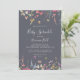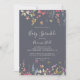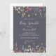 Este clássico convite para o bebê floral azul selvagem é perfeito para um chá de fraldas rústico. A design apresenta flores silvestres brancas, amarelas, roxas e brancas com folhagem em fundo de rosa e aquarela verde.