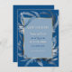 Design elegante com tons modernos de azul clássico - Cor do ano, falso quadro de ouro, divisor de folhas, sobre a cor azul clássica do fundo. Use a ferramenta Personalizar para adicionar suas informações. Para itens correspondentes, visite minha Coleção Azul Clássica de Folha.