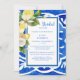 Aquarela Tropical Floral & Lemons. Azulejo mediterrânico. Chá de panela. Elemento floral floral mediterrânico no verso. Azul Cobalto.