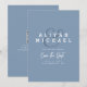 Procurando uma maneira moderna e simples de anunciar seu grande dia? Este minimalista "Salve a data" é perfeito para apresentar seus convidados ao dia do seu casamento. Apresentando tipografia clássica e de script em um fundo azul empoeirado que pode ser personalizado, o verso também inclui um código QR para os convidados digitalizarem e visitarem seu site para mais detalhes sobre o evento. Esta na moda e design prática certamente vai impressionar e deixar seus entes queridos saberem que você vai se casar.