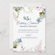 Convites modernos e elegantes de 85 anos com sotaque floral rosa e azul. Os convites podem ser totalmente personalizados para refletir qualquer idade ou ocasião e honrar. Eles fazem parte de uma coleção maior que inclui guardanapos, placas de papel, balões, autocolantes e mais, tudo feito para se misturar harmoniosamente ao tema dos convites. Essa coleção coesa de suprimentos partidários garante que sua celebração seja perfeitamente coordenada