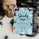 Um cartão de convite de aniversário do garoto, com tema bonito, de halloween, com ilustração de um fantasma, gato preto, aranha, morcego, doces e abóboras. O texto diz "Spooky One".