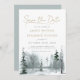 Slate Blue Salve O Convite Mínimo Da Floresta De Pinheiros Do WINTER. Elegante salve o cartão de data com belas cores d'água pintadas à mão na cena do inverno na ardósia azul e cinza verde com um roteiro elegante de caligrafia. Casamento minimalista moderno salve o cartão perfeito para o outono e casamentos no inverno. Você pode personalizar o texto, o estilo da fonte, a cor e o tamanho em frente e atrás do cartão. Por favor, sinta-se à vontade para contactar-me para obter os itens correspondentes.