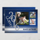 Classe de convite para graduação de imagem tripla de 2016 em azul escuro com faixa prateada de varsidade e data de 2016. Carregue 3 das suas fotos favoritas e personalize com o seu próprio texto e estilo de fonte.