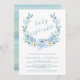 Este convite de aspersão para bebês apresenta uma coroa de flores bonito de aquarela em vários tons de azul e amarelo macio.