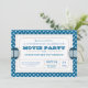 Convide todos a sua noite de cinema do aniversário com este convite do divertimento projetado como um bilhete da admissão do filme. Bilhete branco, com texto nos azuis em uma luz do divertimento - as bolinhas azuis modelaram o fundo azul escuro. Também disponível em uma variedade de esquemas de cores adicionais.