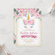 Dourada Glitter Palha Cor-de-Rosa Floral Unicórida Convite de Aniversário do Unicórnio