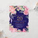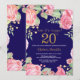 Convite do aniversário da surpresa floral 20o para mulheres. Flor floral botânica da aguarela. Brilho Dourado. Flores florais das peônias cor-de-rosa. Aniversário adulto. Fundo dos azuis marinhos. Para uma personalização mais adicional, clique por favor "personalizam-no" botão e usam-nos nossa ferramenta de design para alterar este modelo.