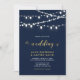 Celebre seu dia especial com este modelo de convite de casamento moderno na moda. Este design apresenta belas luzes de cordas e tipografia com um tema de cor azul de ouro e marinho. Convites e suprimentos de festa estão disponíveis no meu compro BaraBomDesign.
