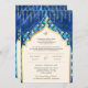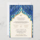 Convites Azul Dourado Quatrefoil Código QR Casamento Sikh