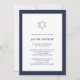 Estes convites simples e modernos para o Bar Mitzvah ou Bat Mitzvah apresentam uma borda azul escura, com um texto elegante e uma Estrela prateada de David.