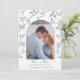 Delicado azul e branco Toile com pássaros e flores ao redor de uma moldura de arco com foto de casal cartão Save the Date