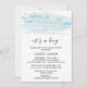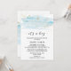 Este cartão de chá de fraldas azul-d'água e dourado "é um menino" é perfeito para um chá elegante para bebês. O design luxuoso apresenta uma textura azul-clara de aquarela com um salto de belo brilho de ouro falso e uma fonte moderna de escrita de caligrafia. Nota: Este design não apresenta brilho de ouro real. É um gráfico de alta qualidade feito para parecer um brilho dourado.
