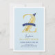 Celebre seu dia especial com este convite de festas moderno do segundo aniversário. Este design apresenta a tipografia dourada "2" com uma faixa azul e um chapéu de festa fofo. Este convite simples e fofo será perfeito para uma festa de aniversário do moderno teme azul e ouro.