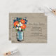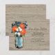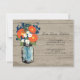 Convites Azul e Laranja Mason Jar de Madeira | Recepção