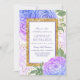 Flores de aquarelas azuis e roxas e pontos de confete dourados - convites de festas de aniversários elegantes e glamourosos
