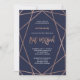 Estes convites de na moda Bat Mitzvah apresentam um padrão geométrico falsa rosa dourado num fundo azul-da-meia-noite rico, com tipografia moderna.