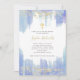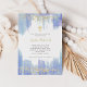 Esses bonitos e elegantes convites para Batismo ou Christening apresentam tendências de aquarela pairante em tons claros e escuros de azul, com falsos olhos dourados e confete de ouro.