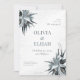 Estes convites de casamento de 5" x 7" apresentam um buquê suculento com sotaques de flor secos em um fundo de textura meteorológica. Os acionistas começam com, "Por favor juntem-se a nós para o casamento de", os nomes dos casais de casamento, data e hora, local com endereço e, "recepção a seguir."