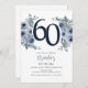 Convites Azul Elegante Floral 60º Aniversário