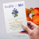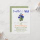 Flores Florais Florais Simples, Azul Elegante, Laranja e Verde, com Borboleta e texto "Lindo e Selvagem" que você pode personalizar para seu próprio Chá de panela Moderno para seleção de primavera, verão ou outono.