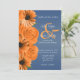 Convites Azul empoeirado com Rosa Laranja e Margarida