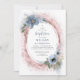 Convites de batismo floral, de cor azul-poeirenta e de ouro-rosa