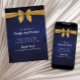 Fundo azul escuro impressionante amarrado com uma imagem de arco dourada. Papel de carta está todo impresso, sem fita verdadeira. Personalize nossa bela papelaria com seus detalhes de evento fácil e rapidamente, basta pressionar o botão personalizar. Está incluída a coordenação no verso. Itens correspondentes para concluir sua coleção de eventos estão disponíveis em nossa loja Zazzle!