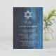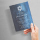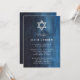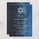 Estes belos convites para o Bar Mitzvah apresentam um elegante olhar aquoso em um tom na moda de azul escuro com uma Estrela de David em prata.