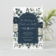 Convites Azul Escuro e Branco Casamento Moderno Floral Verd