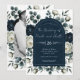 Convite de Casamento Floral Verde com Azul Escuro e Branco Moderno.