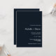 Convidações de Casamento Azul e Branco da meia-noite minimalistas com fontes finas e modernas de sans serif. Todas as fontes, cores e tamanhos são personalizáveis para cheio. Todas as cores estão disponíveis. Entre em contato conosco em citronelladesign@gmail.com para obter uma solicitação personalizada