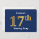 Convites Azul, Faux Dourado 17ª Festa de aniversário + Nome