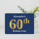 Convites Azul, Faux Dourado 60ª Festa de aniversário + Nome